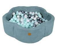 Περιλαμβάνει 200 μπαλάκια σε Γαλάζιο Teal, Λευκό περλέ και ασημί χρώμα και καπάκι για όταν δεν χρησιμοποιείται