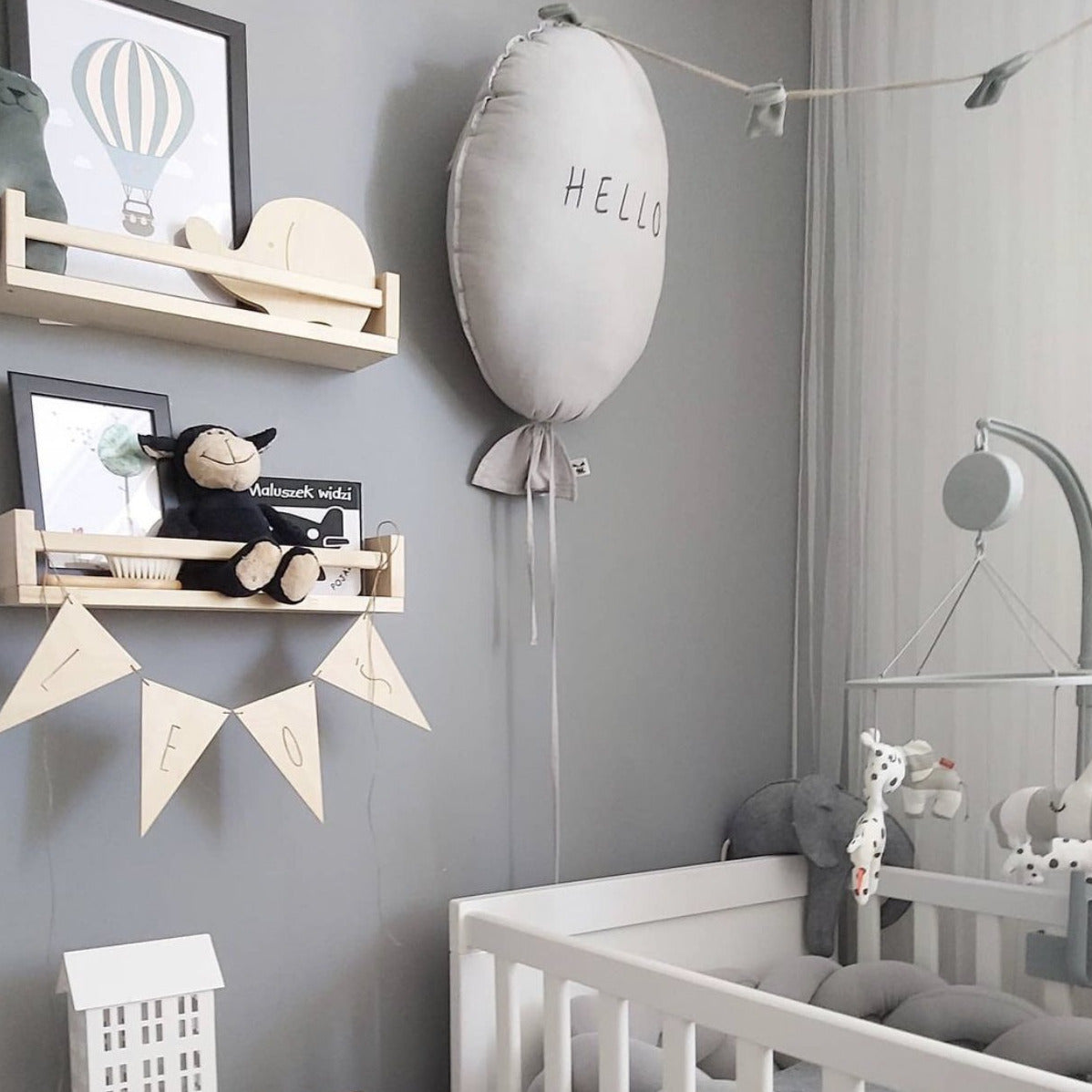 Υφασμάτινο μπαλόνι με κεντημένη τη λέξη "Hello" στη μία πλευρά και ειδική θηλιά στην άλλη για να το κρεμάσετε στον τοίχο.
