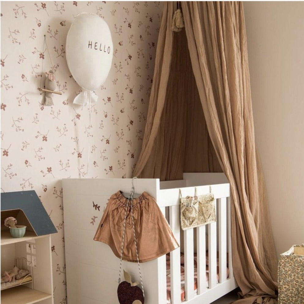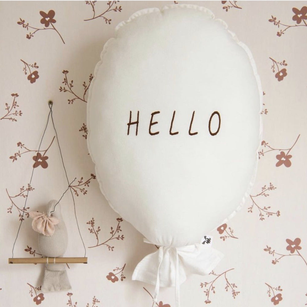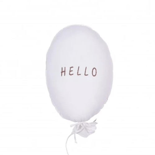Υφασμάτινο μπαλόνι με κεντημένη τη λέξη "Hello" στη μία πλευρά και ειδική θηλιά στην άλλη για να το κρεμάσετε στον τοίχο.