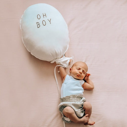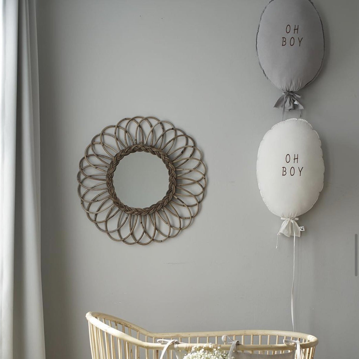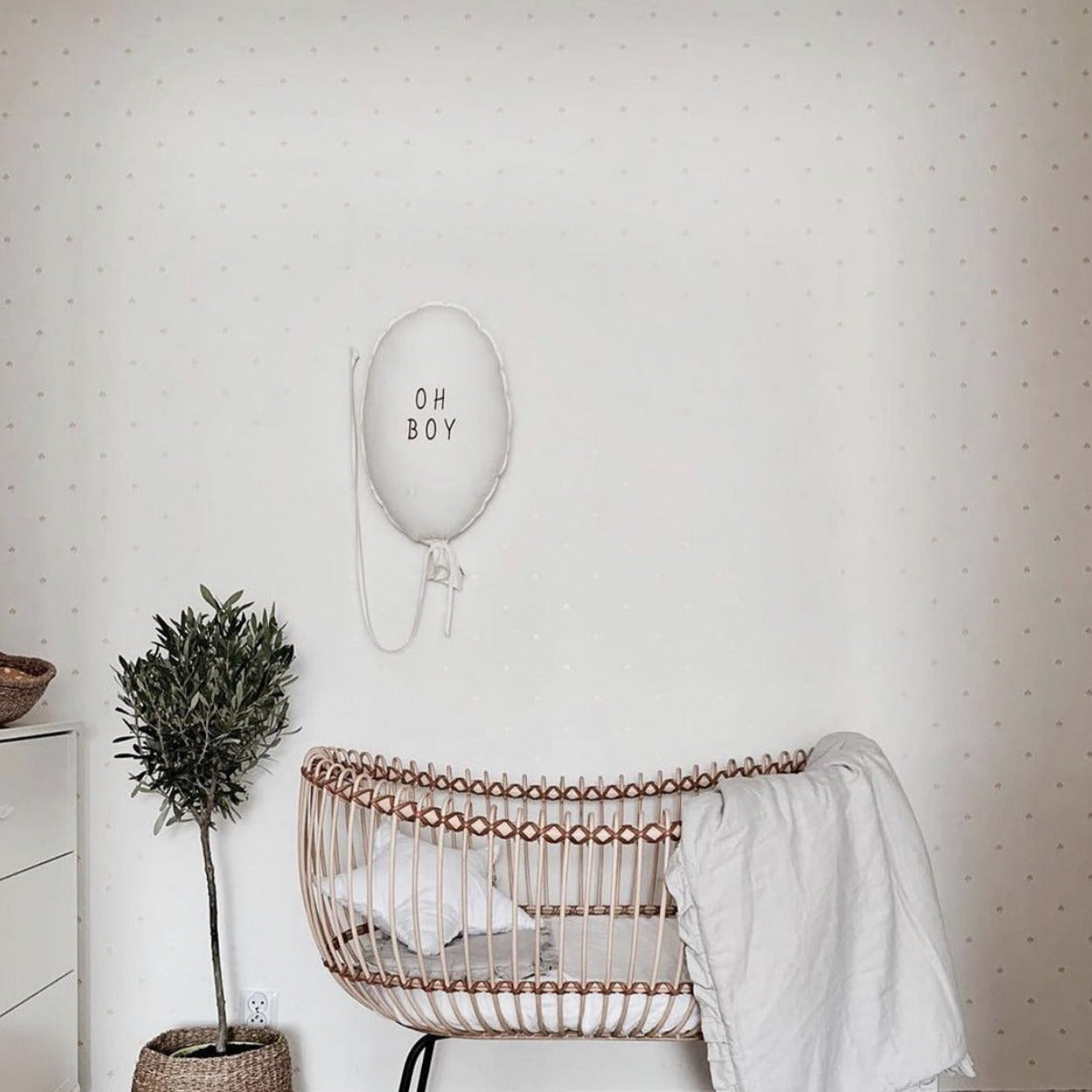 Υφασμάτινο μπαλόνι με κεντημένη τη φράση "Oh Boy" στη μία πλευρά και ειδική θηλιά στην άλλη για να το κρεμάσετε στον τοίχο.