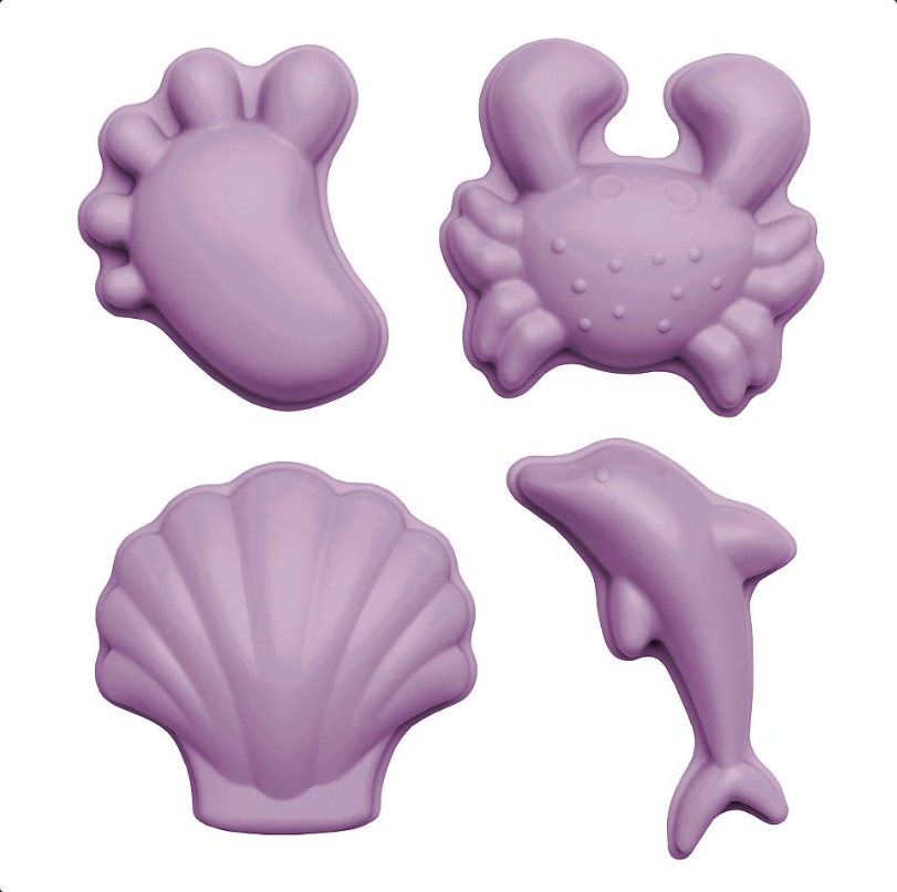 4 παιχνιδάκια παραλίας από 100% ανακυκλωμένη σιλικόνη, ανθεκτικά, ελαφριά, ιδανικά για κατασκευές στην άμμο, παιχνίδια στη θάλασσα ή στο μπάνιο!