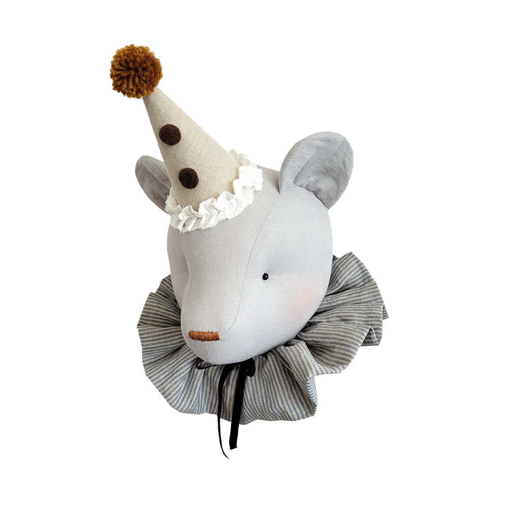 Λινό γκρι αρκουδάκι με το πιο χαρούμενο καπελάκι και περιλαίμιο από ύφασμα! Μεταμορφώστε το δωμάτιό του, τοποθετώντας στον τοίχο το πιο τέλειο αρκουδάκι!