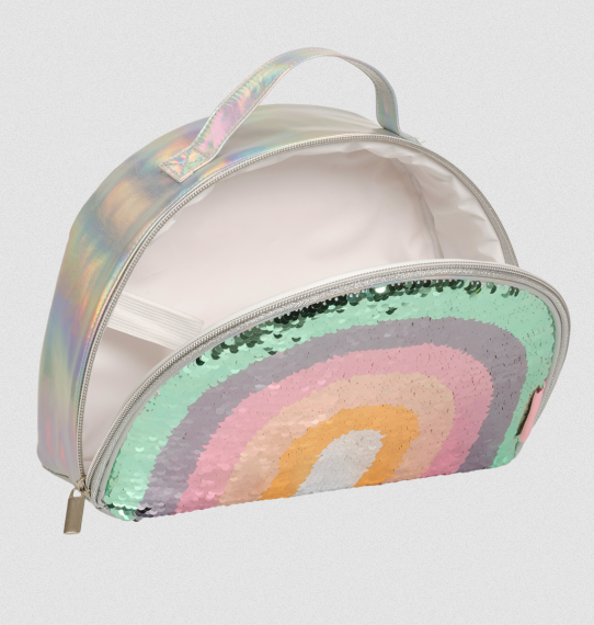Αυτό το ισοθερμικό ουράνιο τόξο θα γίνει ο σύμμαχός σας στην εκδρομή, το πικ νίκ και την παραλία! Έχει αρκετό χώρο για το ταπεράκι του, χυμό και πολλά φρούτα! Αλλά το πιο βασικό.. οι πούλιες στο εξωτερικό του "αλλάζουν" κάνοντάς το ακαταμάχητο στα κοριτσάκια!