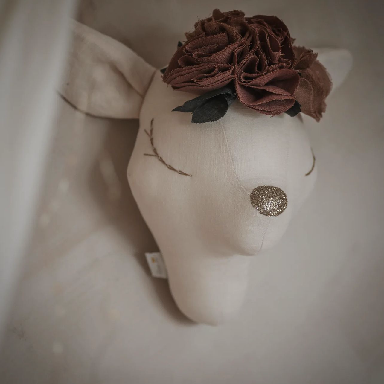 Υφασμάτινο λινό μπεζ ελαφάκι με λουλουδάκια! Χειροποίητο και ζωγραφισμένο στο χέρι! Μεταμορφώστε το δωμάτιό του, τοποθετώντας στον τοίχο το πιο τέλειο ελαφάκι!