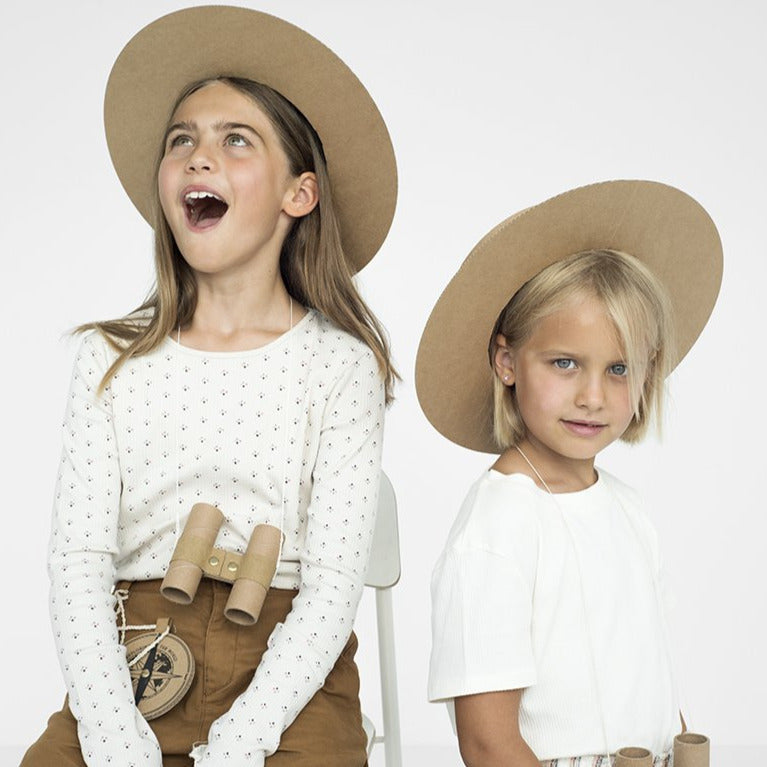 Φτιάξτε την πιο τέλεια στολή για μικρούς ταξιδιώτες και εξερευνητές! Το σετ περιέχει καπελάκι, κιάλια, πυξίδα και σημειωματάριο!