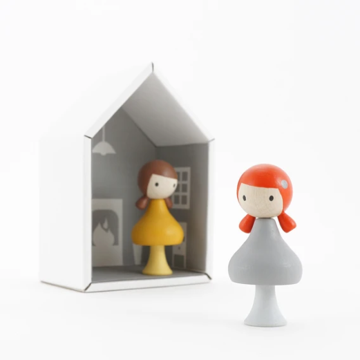 Σετ με 2 χειροποίητες, πολύχρωμες, ξύλινες κούκλες Emma και June!