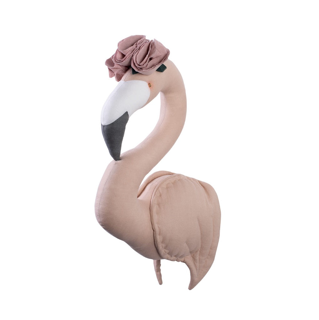 Υφασμάτινο ροζ φλαμίνγκο με λουλουδάκια στο κεφάλι! Μεταμορφώστε το δωμάτιό του, τοποθετώντας στον τοίχο το πιο τέλειο φλαμίνγκο!