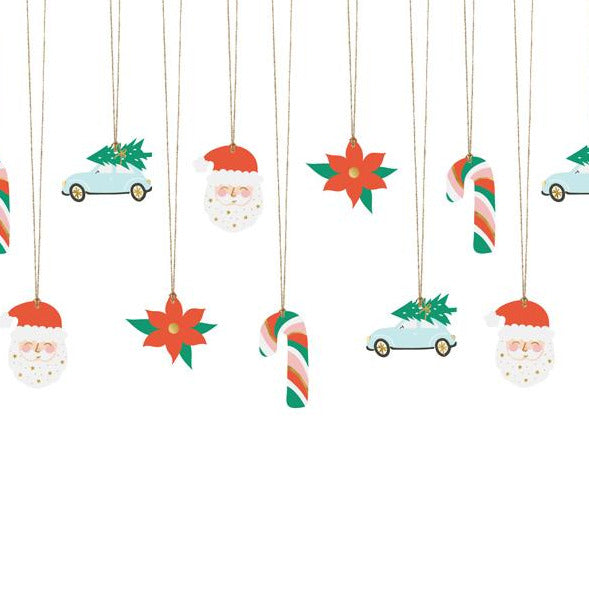 Σετ με 12 χάρτινες διακοσμητικές ετικετούλες για τα δωράκια σας, σε 4 σχέδια (x3 φορές το κάθε ένα) και χρυσή κλωστίτσα για να τα κρεμάσετε.