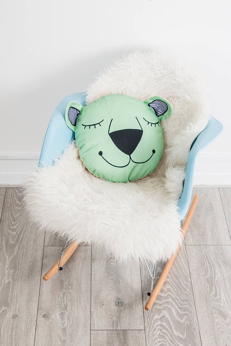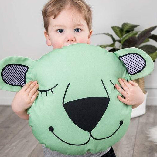 Μαλακό μαξιλαράκι με τον πιο γλυκό πράσινο αρκουδάκο! Ο πιο τέλειος τρόπος να διακοσμήσετε το παιδικό δωμάτιο! Στην πίσω πλευρά έχει μονόχρωμα ύφασμα και κρυφό φερμουάρ για να αφαιρείτε και να πλένετε το κάλυμμα (30 βαθμοί)