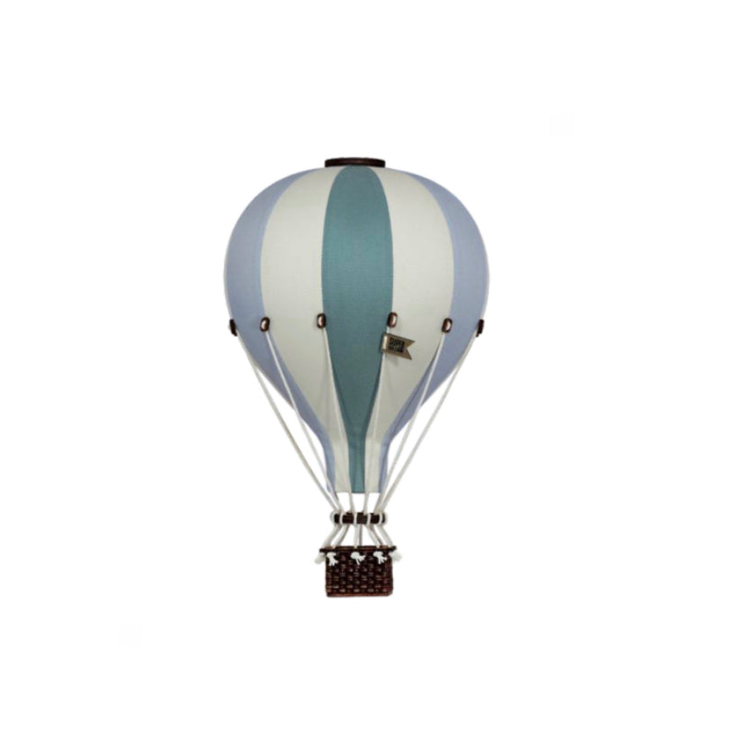 Διακοσμητικό κρεμαστό αερόστατο για το παιδικό δωμάτιο! Κρεμάστε το ψηλά και αφήστε την φαντασία των παιδιών να φτάσει στα σύννεφα! Τα χρώματά του είναι κρεμ, μέντα και γαλάζιο!