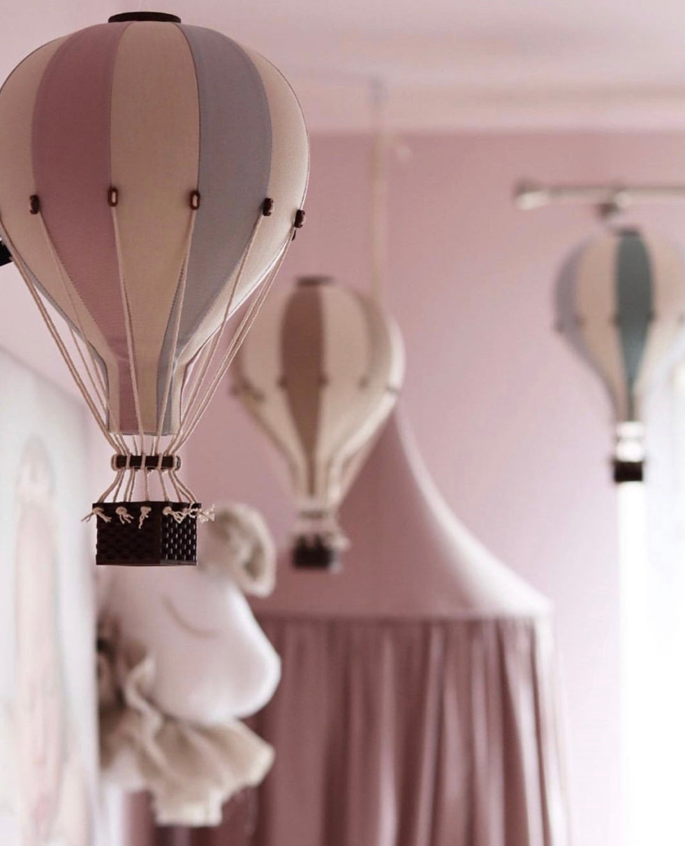 Διακοσμητικό κρεμαστό αερόστατο για το παιδικό δωμάτιο! Κρεμάστε το ψηλά και αφήστε την φαντασία των παιδιών να φτάσει στα σύννεφα! Τα χρώματά του είναι κρεμ, παστέλ ροζ και γαλάζιο!