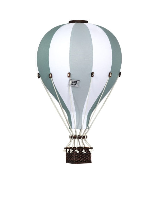 Διακοσμητικό κρεμαστό αερόστατο για το παιδικό δωμάτιο! Κρεμάστε το ψηλά και αφήστε την φαντασία των παιδιών να φτάσει στα σύννεφα! Τα χρώματά του είναι κρεμ, μέντα και γαλάζιο!