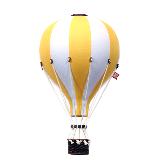 Διακοσμητικό αερόστατο για το παιδικό δωμάτιο! Κρεμάστε το ψηλά και αφήστε την φαντασία των παιδιών να φτάσει στα σύννεφα! Τα χρώματά του είναι κίτρινο και λευκό!
