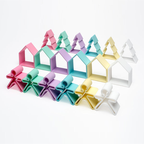 Σετ με 6 σπιτάκια, 6 παιδάκια και 6 δέντρα σε παστέλ αποχρώσεις! Ο απλός σχεδιασμός και το μαλακό υλικό κατασκευής τους, τους επιτρέπει να γίνουν το πρώτο του μασητικό παιχνίδι ενώ όσο περνάει ο καιρός θα ανακαλύπτει όλο και περισσότερες δραστηριότητες που μπορεί να κάνει μαζί τους!