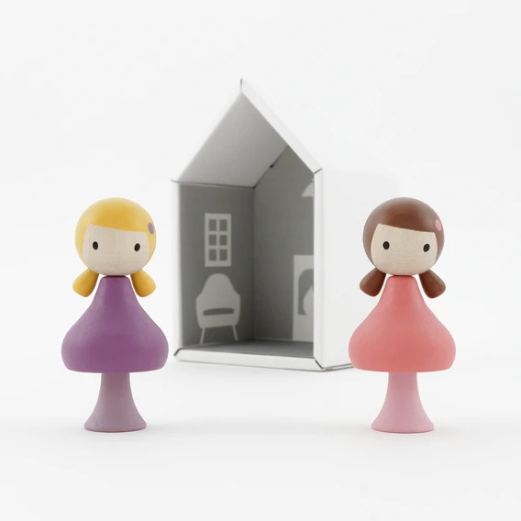 Σετ με 2 χειροποίητες, πολύχρωμες, ξύλινες κούκλες Lucy και Maggie!