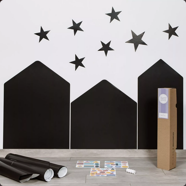 Εύκαμπτο, με ματ φινίρισμα και πανεύκολο να τοποθετηθεί ή να αφαιρεθεί από τον τοίχο σας. Εγκαταστήστε το στο ύψος του παιδιού ώστε να μπορεί να παίξει ελεύθερα: να φτιάξει επάνω σχέδια με μαγνήτες, να φτιάξει ιστορίες ή ακόμα και να ζωγραφίσει με μαρκαδόρους υγρής κιμωλίας!