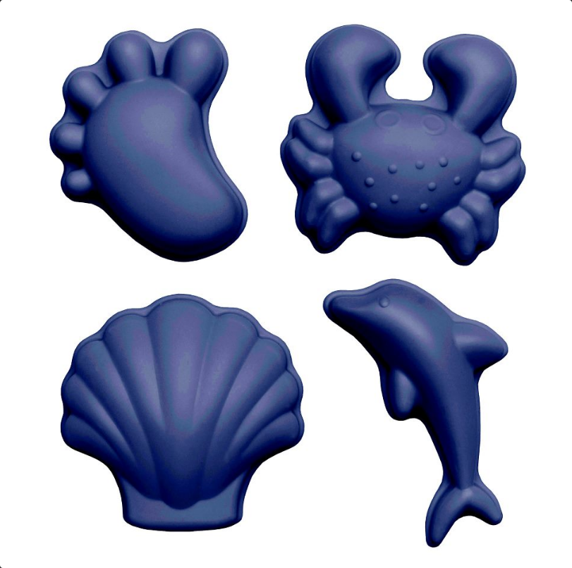 4 παιχνιδάκια παραλίας από 100% ανακυκλωμένη σιλικόνη, ανθεκτικά, ελαφριά, ιδανικά για κατασκευές στην άμμο, παιχνίδια στη θάλασσα ή στο μπάνιο!