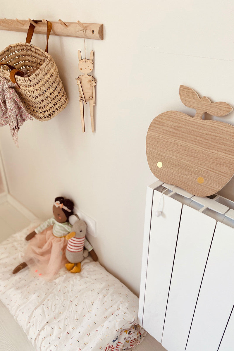 Ξύλινο Μουσικό Κουτί σε σχήμα Μήλου! Κρεμιέται πανεύκολα στον τοίχο του παιδικού δωματίου. Όταν έρθει η ώρα του ύπνου, τραβήξτε το σκοινάκι και απολαύστε τη μελωδία του Hey Jude από τους Beatles!