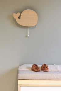 Ξύλινο Μουσικό Κουτί σε σχήμα Φάλαινας! Κρεμιέται πανεύκολα στον τοίχο του παιδικού δωματίου. Όταν έρθει η ώρα του ύπνου, τραβήξτε το σκοινάκι και απολαύστε τη μελωδία του Hey Jude από τους Beatles!