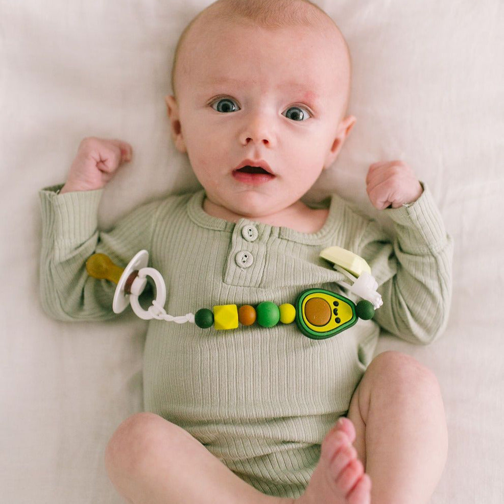 Το τέλειο κλιπ για να μην χάνεται ποτέ την πιπίλα σας! Και για να γίνει πιο "ενδιαφέρον", διαθέτει και μασητικό παιχνιδάκι ανάμεσα στις χαντρούλες για να ανακουφίζει τα ούλα των μωρών!
