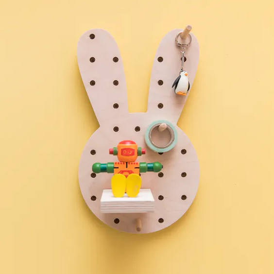Ξύλινο διακοσμητικό πάνελ με τρυπούλες, στις οποίες τοποθετείτε το ραφάκι και τους πείρους ώστε να δημιουργήσετε το ράφι που ταιριάζει στις δικές σας ανάγκες!