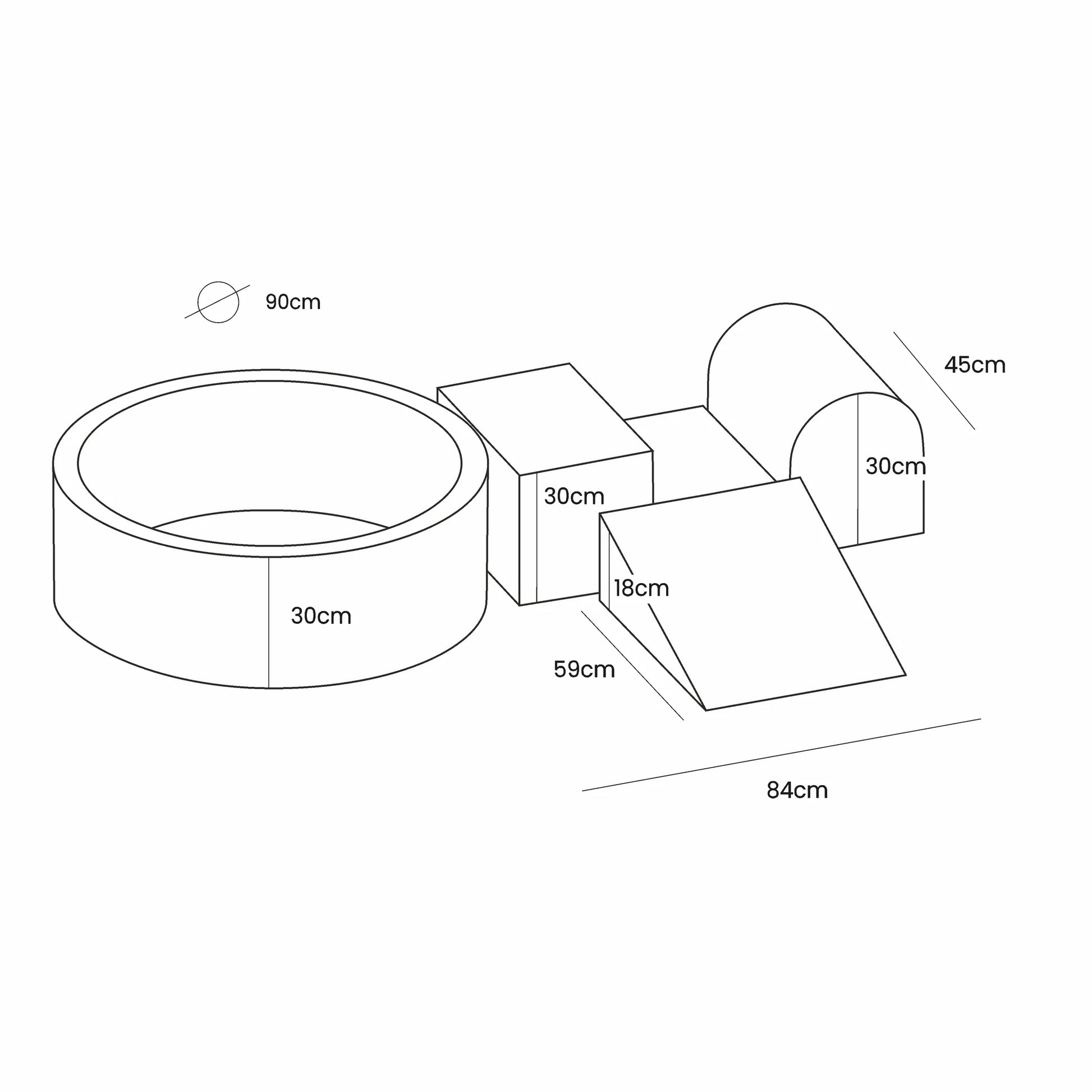 Μπαλοπισίνα 90x30cm | Αν τοποθετηθούν οι μονάδες σε σειρά, έχουν συνολικό μήκος περίπου 225cm