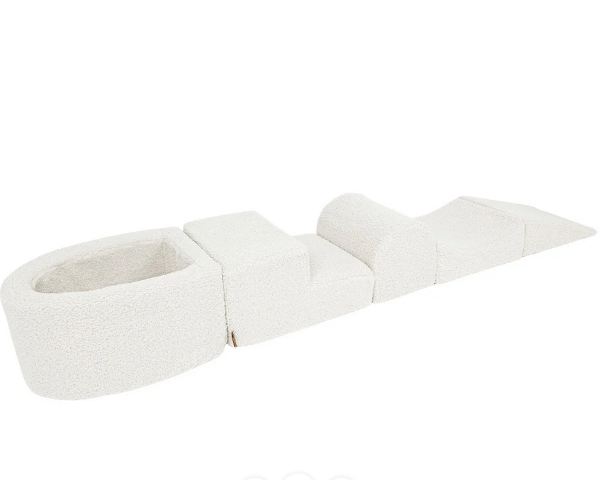 Σετ παιχνιδιού με 4 στοιχεία από αφρολέξ και μίνι μπαλοπισίνα με 100 μπαλάκια (Ροζ περλέ, Λευκό περλέ, Χρυσό περλέ).