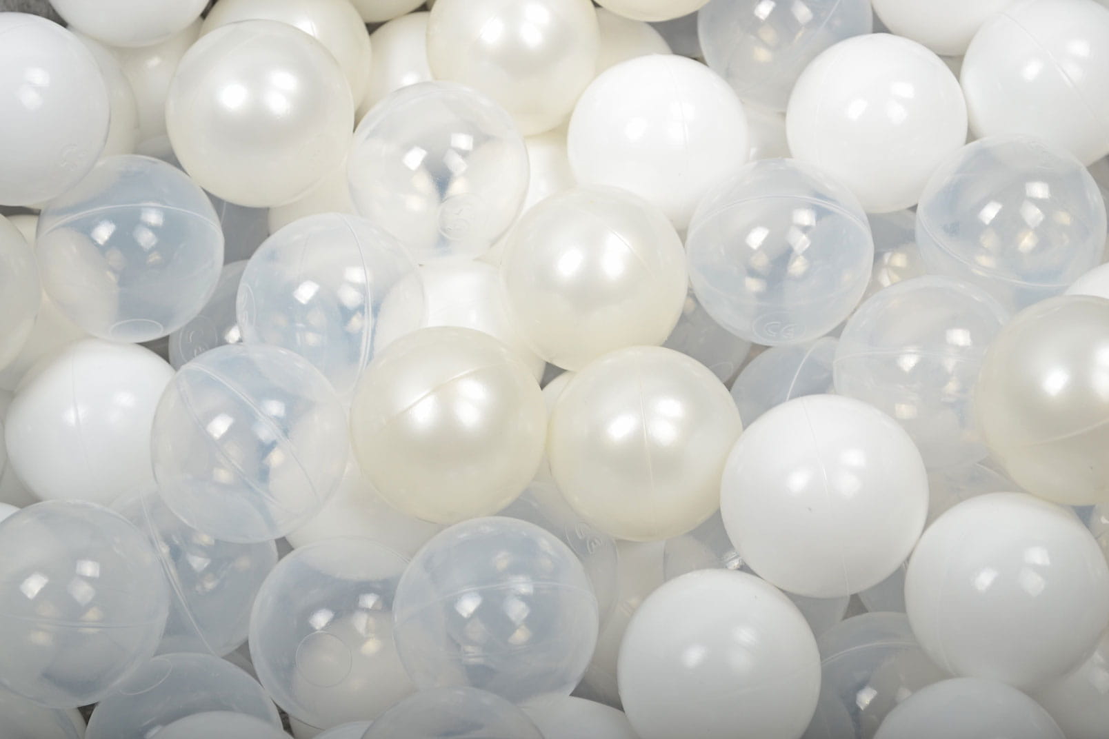 Σετ παιχνιδιού με 4 στοιχεία από αφρολέξ και μίνι μπαλοπισίνα με 100 μπαλάκια (Λευκό, Διάφανο & Λευκό περλέ).