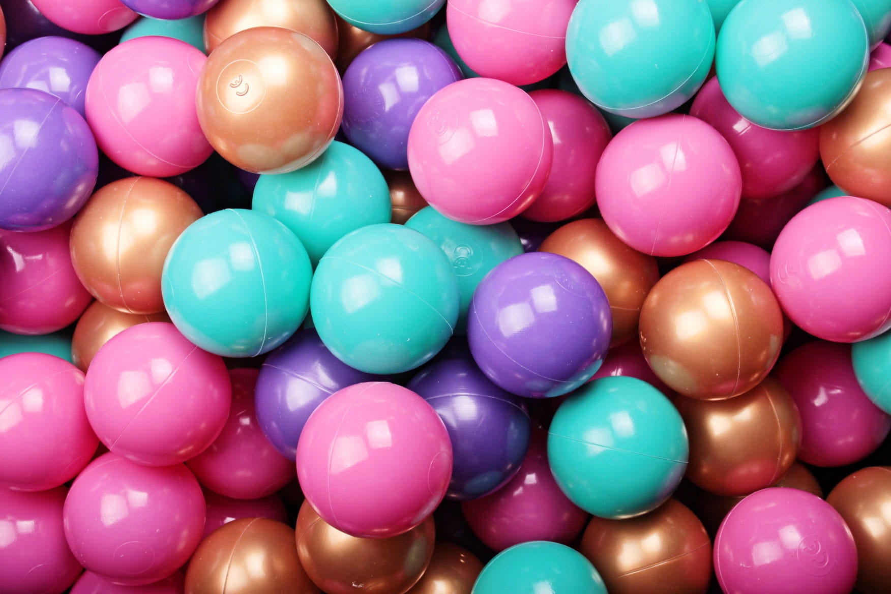 Σετ παιχνιδιού με 4 στοιχεία από αφρολέξ και μίνι μπαλοπισίνα με 100 μπαλάκια (Χρυσό, Ροζ σκουρο, Λιλά, Τυρκουάζ).