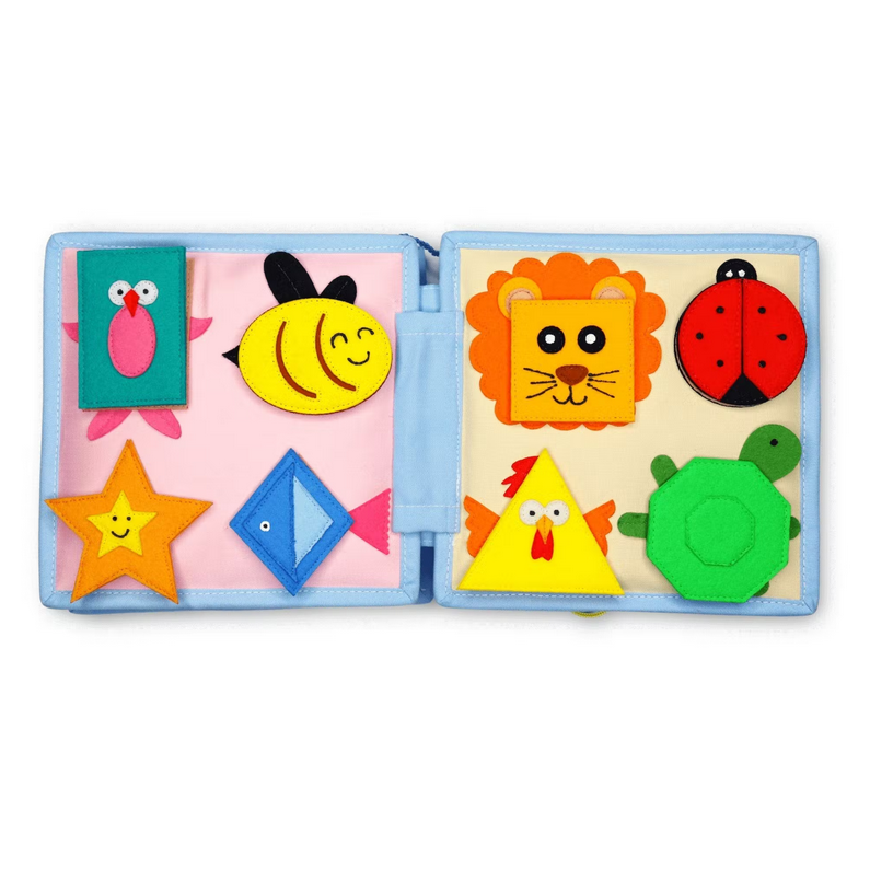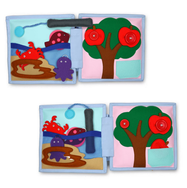 Περιλαμβάνει 6 σελίδες με χαρούμενα σχέδια, αφαιρούμενα και κινούμενα τμήματα αλλά και υφές που προάγουν την λεπτή κινητικότητα των παιδιών και εξάπτουν την φαντασία τους.