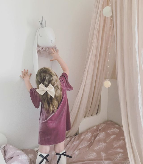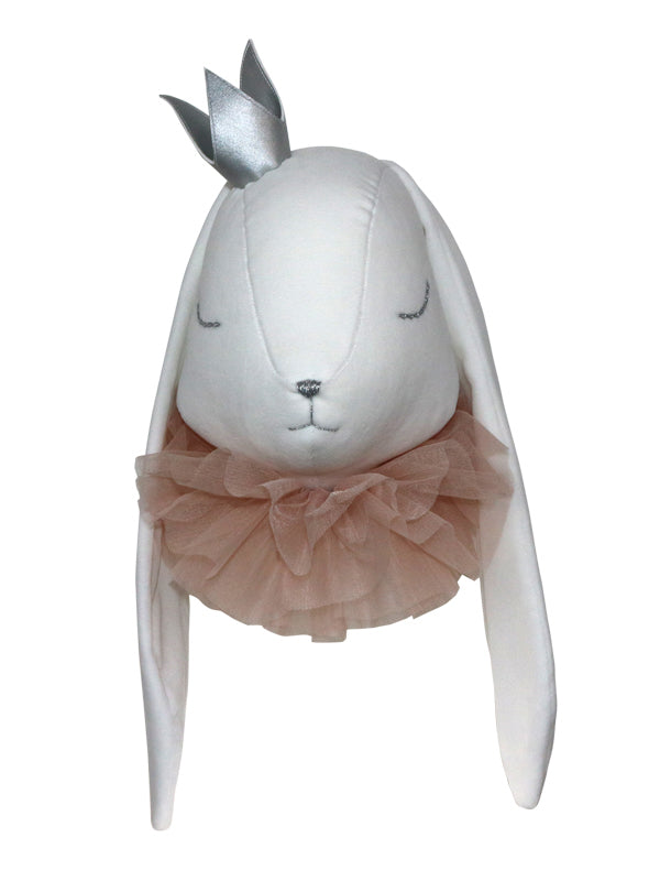 Βελούδινο λευκό κουνελάκι με ασημένια κορώνα και περιλαίμιο από ροζ τούλι! Μεταμορφώστε το δωμάτιό του, τοποθετώντας στον τοίχο το πιο τέλειο κουνελάκι!