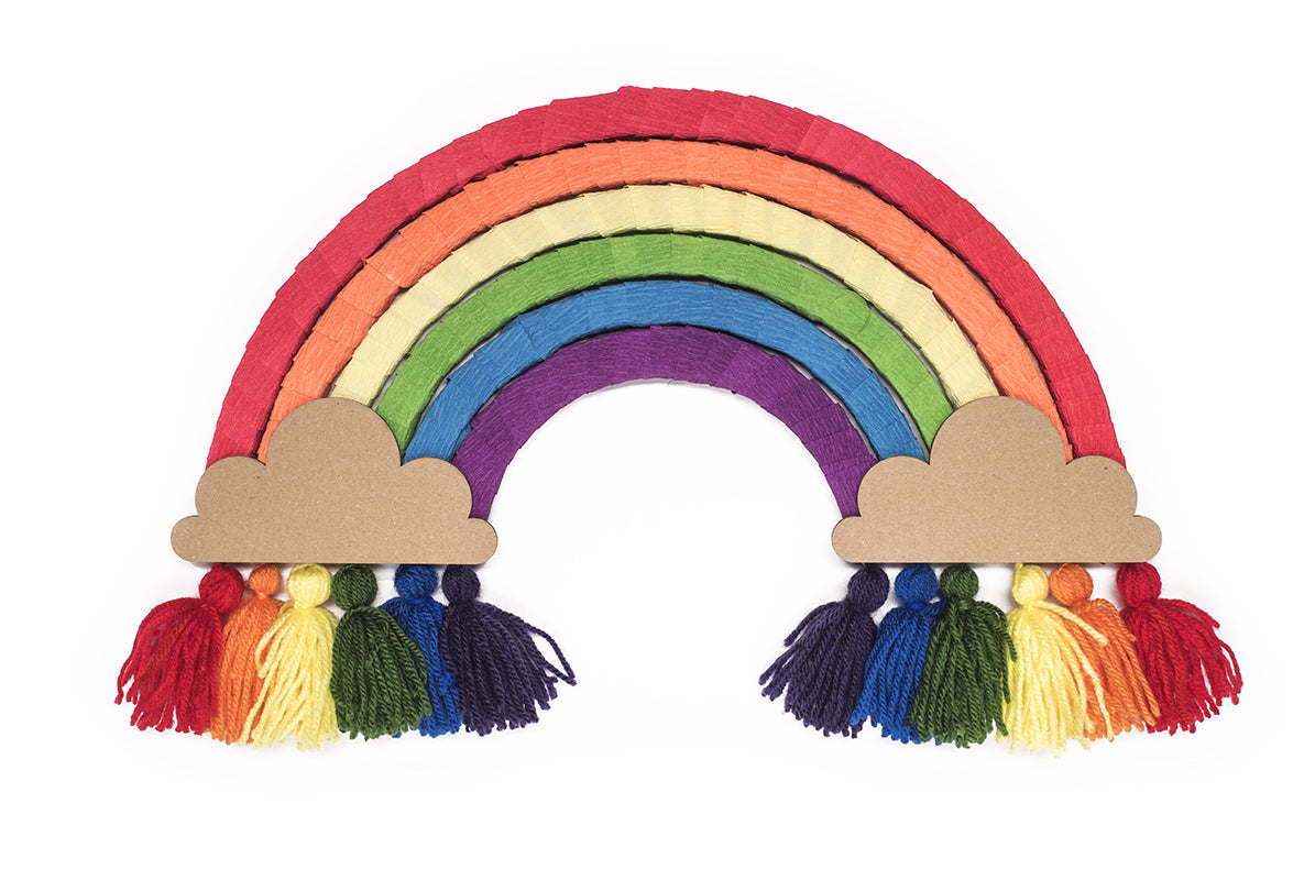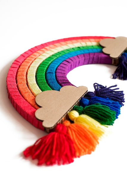 Το σετ περιλαμβάνει μια βάση από χαρτόνι, 6 κρέπ πολύχρωμα χαρτιά, 12 κομμάτια μαλλί για να φτιάξετε τις ουρίτσες, δυο χαρτονένια συννεφάκια και μια "βελόνα" από χαρτόνι. Θα σας χρειαστούν ακόμα: ψαλίδι, μια παραδοσιακή χοντρή βελόνα  και κόλλα (ιδανικά μια δυνατή στίκ).