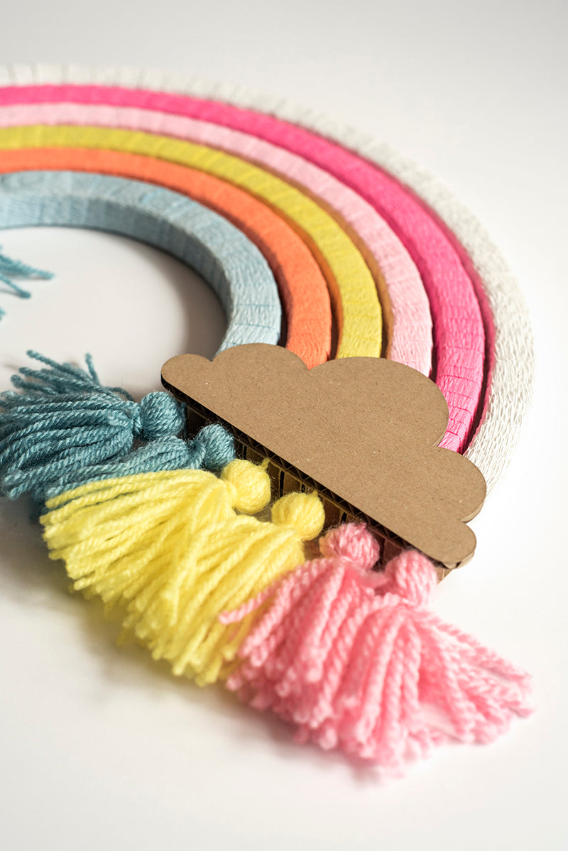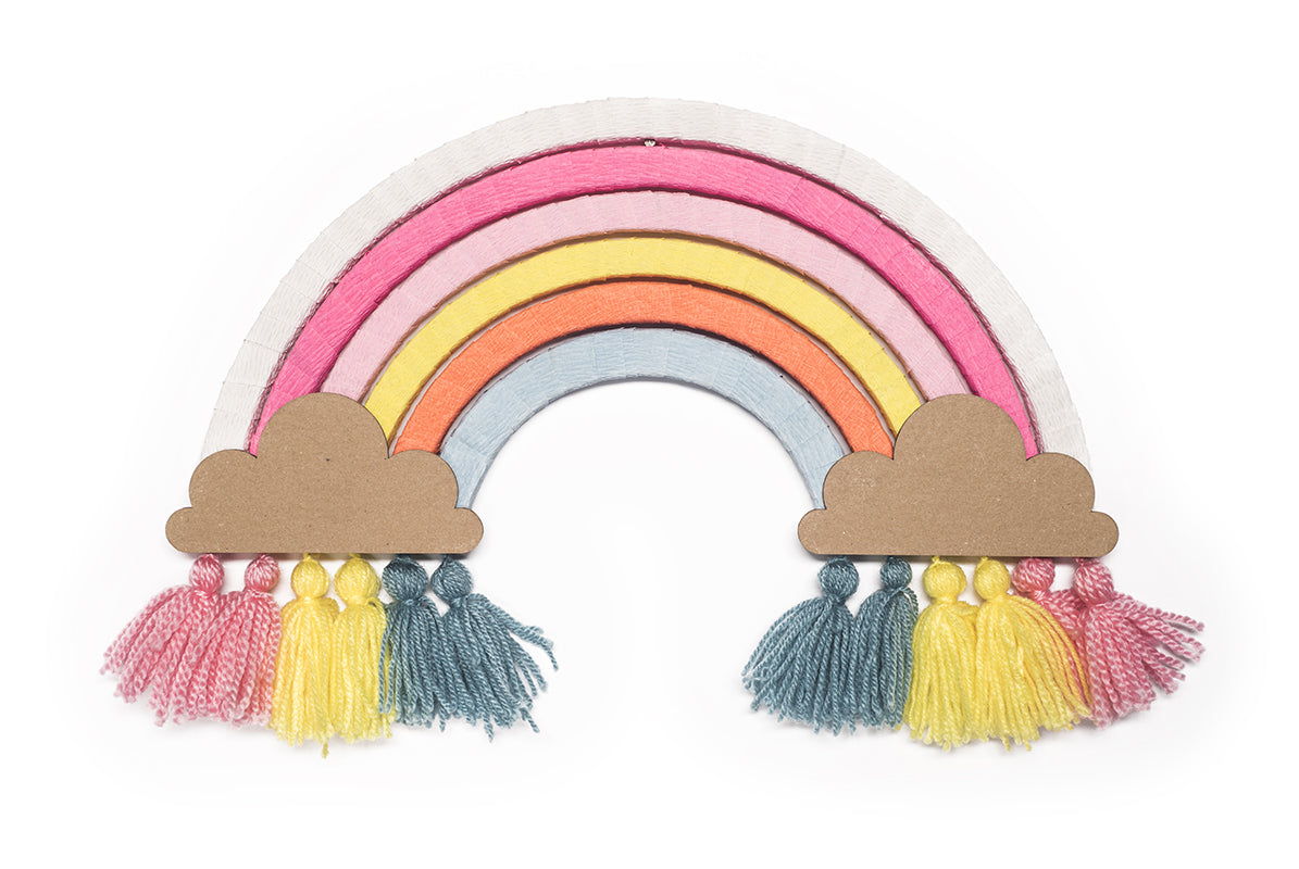 Το σετ περιλαμβάνει μια βάση από χαρτόνι, 6 κρέπ πολύχρωμα χαρτιά, 12 κομμάτια μαλλί για να φτιάξετε τις ουρίτσες, δυο χαρτονένια συννεφάκια και μια "βελόνα" από χαρτόνι. Θα σας χρειαστούν ακόμα: ψαλίδι, μια παραδοσιακή χοντρή βελόνα  και κόλλα (ιδανικά μια δυνατή στίκ).
