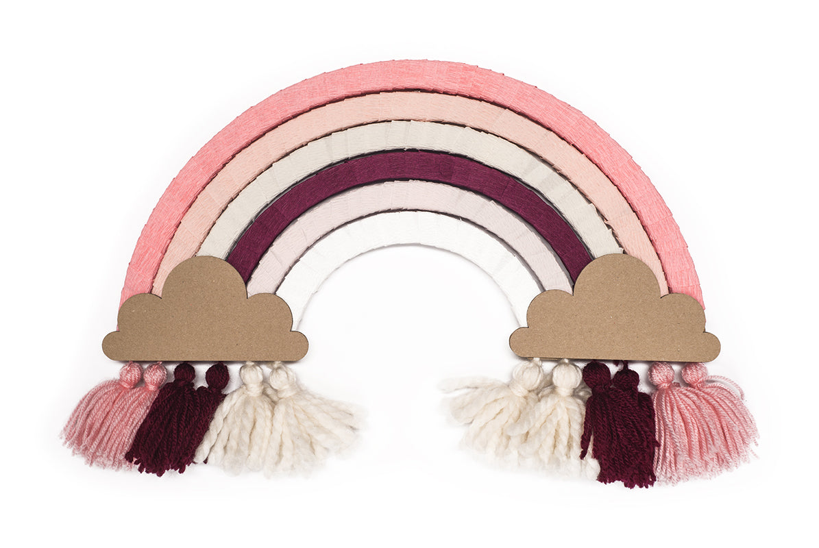 Το σετ περιλαμβάνει μια βάση από χαρτόνι, 6 κρέπ πολύχρωμα χαρτιά, 12 κομμάτια μαλλί για να φτιάξετε τις ουρίτσες, δυο χαρτονένια συννεφάκια και μια "βελόνα" από χαρτόνι. Θα σας χρειαστούν ακόμα: ψαλίδι, μια παραδοσιακή χοντρή βελόνα  και κόλλα (ιδανικά μια δυνατή στίκ).