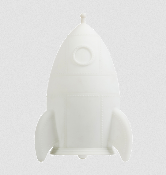 Αυτός ο πύραυλος θα βοηθήσει το παιδί να μην φοβάται τη νύχτα και να κοιμηθεί ήρεμα και θα απογειώσει την διακόσμηση του δωματίου του την ημέρα!  Μπορεί να το μεταφέρει μαζί του αν σηκώνεται τη νύχτα ή να το παίρνει αγκαλιά! Ο απαλός φωτισμός του είναι επίσης ιδανικός για τα βραδινά ταΐσματα για να μην ξυπνάει τελείως το μωρό. Περιλαμβάνει σετ με αυτοκόλλητα για να τον διακοσμήσετε!