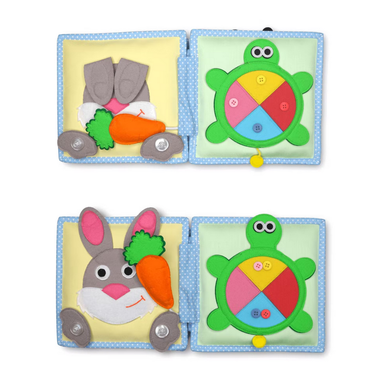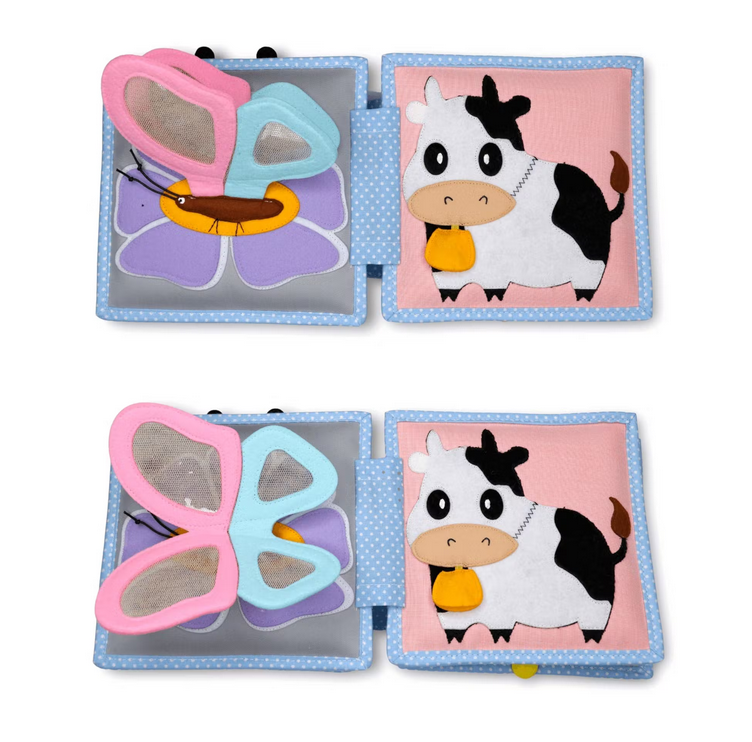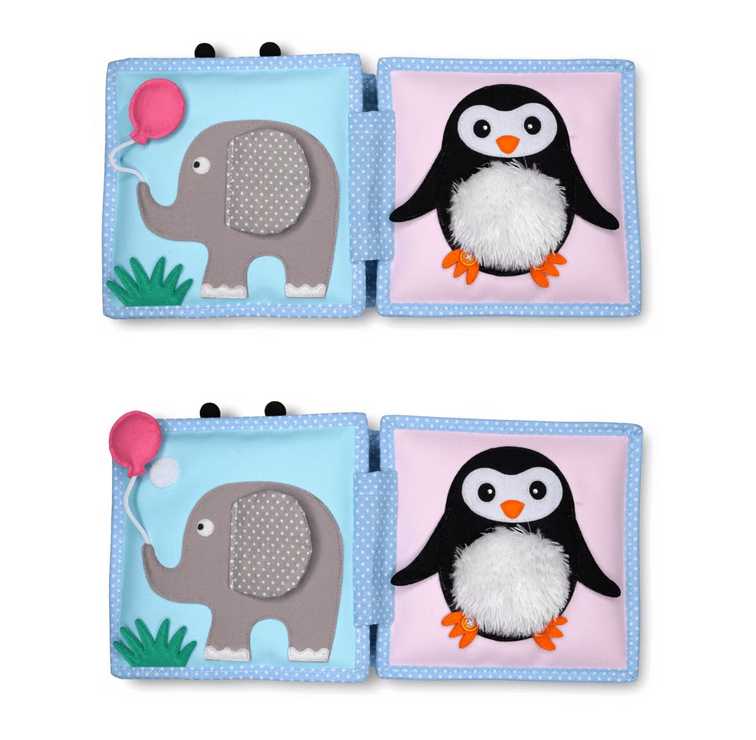 Περιλαμβάνει 6 σελίδες με χαρούμενα σχέδια, αφαιρούμενα και κινούμενα τμήματα αλλά και υφές που προάγουν την λεπτή κινητικότητα των παιδιών και εξάπτουν την φαντασία τους.