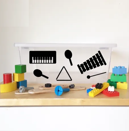Βοηθήστε τα να αναγνωρίσουν που μπαίνει το κάθε παιχνίδι με το ειδικό αυτοκόλλητο που θα τοποθετήσετε έξω από το αντίστοιχο κουτί!