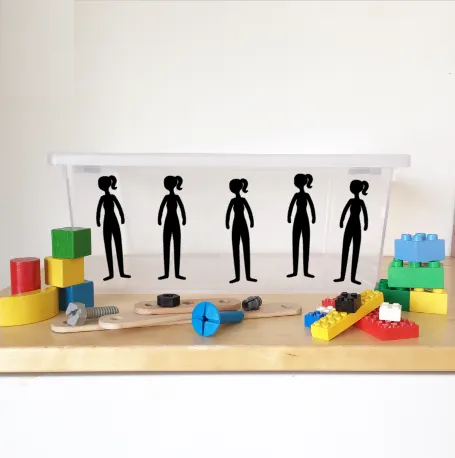 Βοηθήστε τα να αναγνωρίσουν που μπαίνει το κάθε παιχνίδι με το ειδικό αυτοκόλλητο που θα τοποθετήσετε έξω από το αντίστοιχο κουτί!