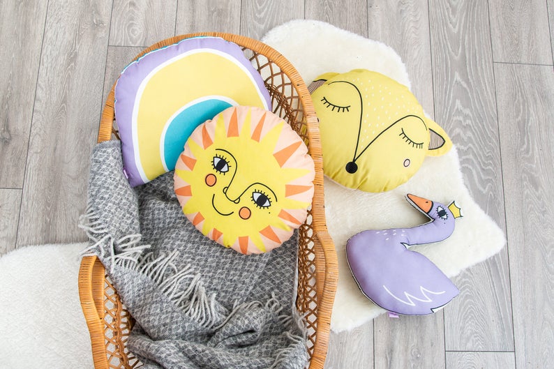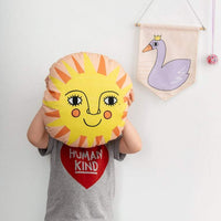 Μαλακό μαξιλαράκι με τον πιο φωτεινό και χαμογελαστό ήλιο! Ο πιο τέλειος τρόπος να διακοσμήσετε το παιδικό δωμάτιο! Στην πίσω πλευρά έχει μονόχρωμα ύφασμα και κρυφό φερμουάρ για να αφαιρείτε και να πλένετε το κάλυμμα (30 βαθμοί)