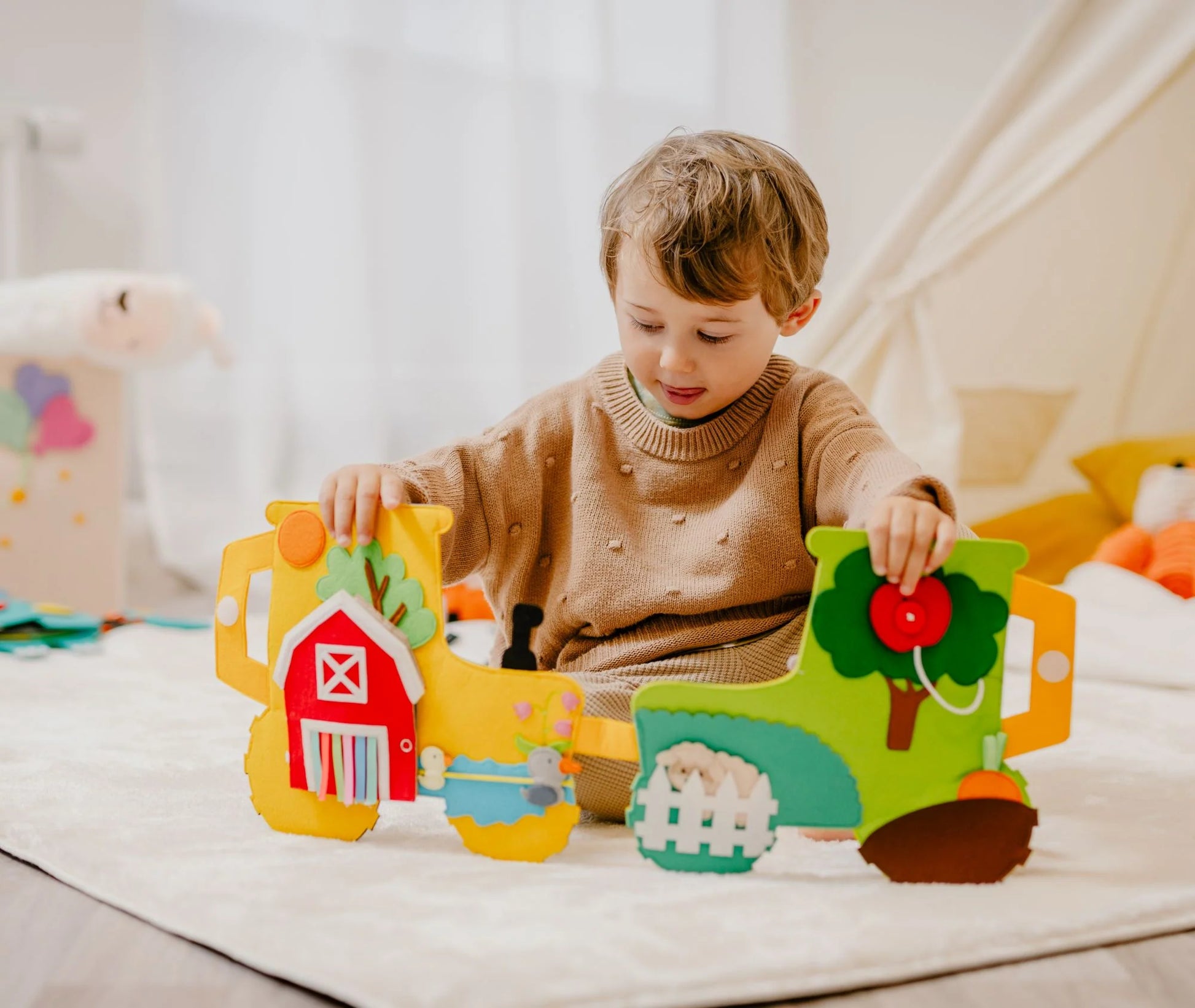 Περιλαμβάνει 2 σελίδες με χαρούμενα σχέδια, αφαιρούμενα και κινούμενα τμήματα αλλά και υφές που προάγουν την λεπτή κινητικότητα των παιδιών και εξάπτουν την φαντασία τους.