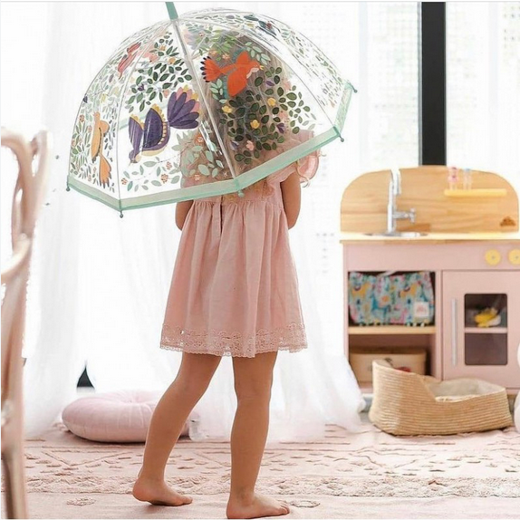 Το διάφανο PVC υλικό της ομπρέλας επιτρέπει στο παιδί να βλέπει και να παρατηρεί γύρω του και ο ψηλός θόλος της παρέχει μεγάλη προστασία από τις σταγόνες της βροχής. Το Fibreglass υλικό προσφέρει έναν γερό και ανθεκτικό σκελετό. Ο χειροκίνητος τρόπος ανοίγματός της προστατεύει τα δάχτυλα των μικρών μας φίλων. Τα πλαστικά καπάκια στις άκρες από τις ακτίνες, καθιστούν την ομπρέλα απόλυτα ασφαλή και κατάλληλη για παιδιά από 4 ετών και άνω.