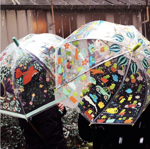 Το διάφανο PVC υλικό της ομπρέλας επιτρέπει στο παιδί να βλέπει και να παρατηρεί γύρω του και ο ψηλός θόλος της παρέχει μεγάλη προστασία από τις σταγόνες της βροχής. Το Fibreglass υλικό προσφέρει έναν γερό και ανθεκτικό σκελετό. Ο χειροκίνητος τρόπος ανοίγματός της προστατεύει τα δάχτυλα των μικρών μας φίλων. Τα πλαστικά καπάκια στις άκρες από τις ακτίνες, καθιστούν την ομπρέλα απόλυτα ασφαλή και κατάλληλη για παιδιά από 4 ετών και άνω.