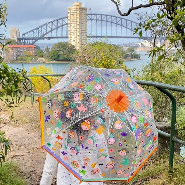 Το διάφανο PVC υλικό της ομπρέλας επιτρέπει στο παιδί να βλέπει γύρω του όταν περπατά, ενώ ο ψηλός θόλος της παρέχει μεγάλη προστασία από τις σταγόνες της βροχής.