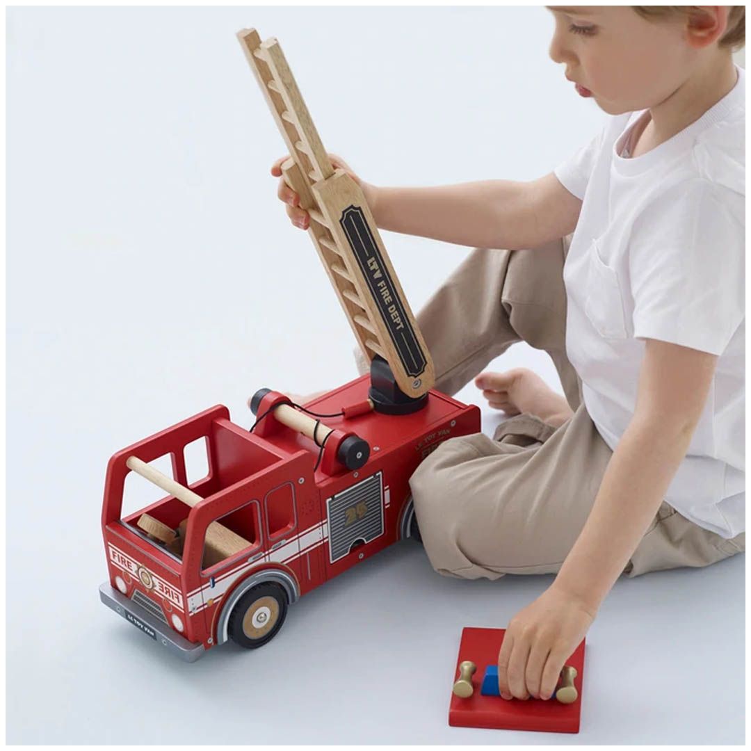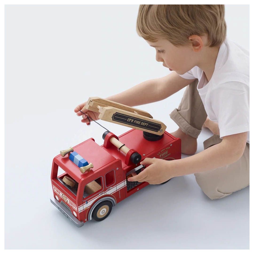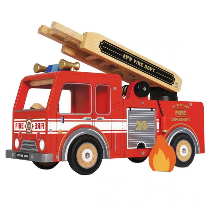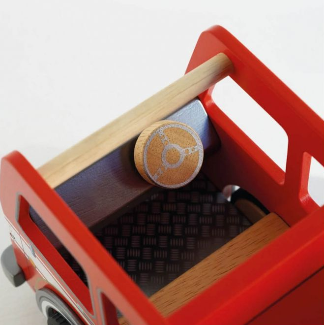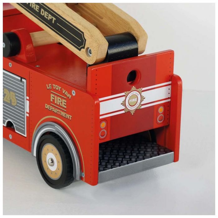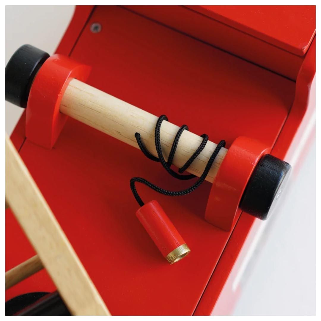 Ξύλινο πυροσβεστικό με επεκτεινόμενη περιστρεφόμενη σκάλα, λάστιχο περιέλιξης και ξύλινη φωτιά.