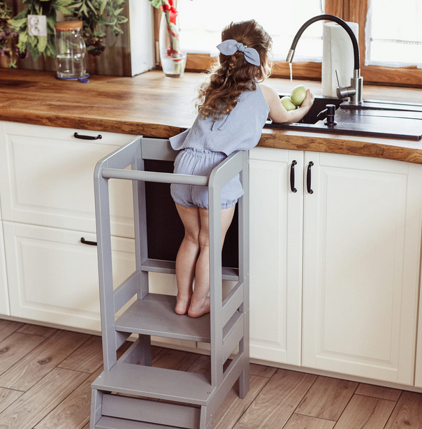Συνήθως τα παιδιά έχουν περιορισμένη πρόσβαση στον πάγκο της κουζίνας, το νεροχύτη ή το τραπέζι. Τώρα όμως μπορεί να συμμετέχει ενεργά στα πάντα!