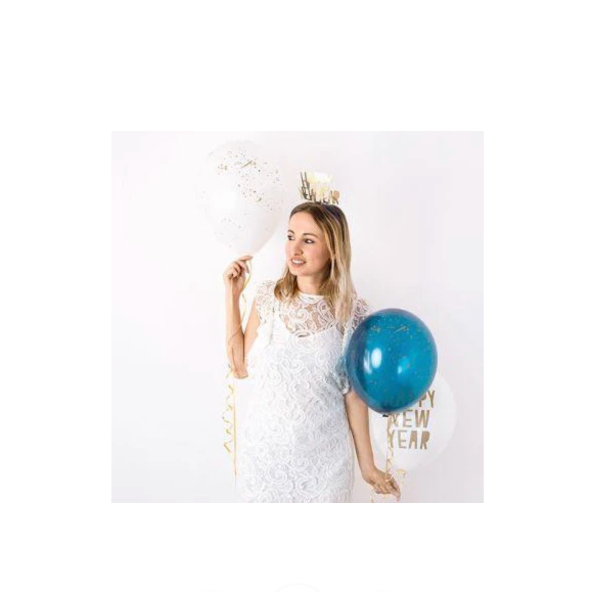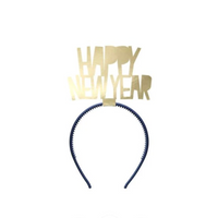 1 x πλαστική στέκα (μπλέ σκούρο) με χάρτινη επιγραφή "Happy New Year", σε χρυσό μεταλλικό.